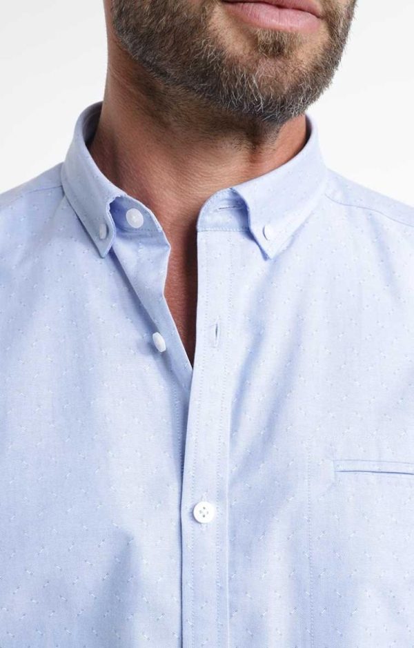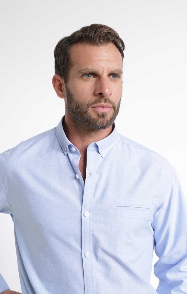 Chemise de ville à motifs coupe confort. Coupe confort. Manches longues avec poignets boutonnés. Col avec pointes boutonnées. Fermeture boutonnée devant. Une poche passepoilée sur la poitrine. Imprimé à mini motifs en all-over. Boutons nacrés. Découpe horizontale dans le haut du dos. Composition en coton mélangé.Notre mannequin Nicolas mesure 1m87 et porte une chemise taille M.
