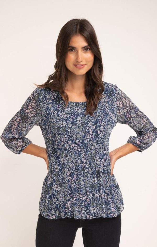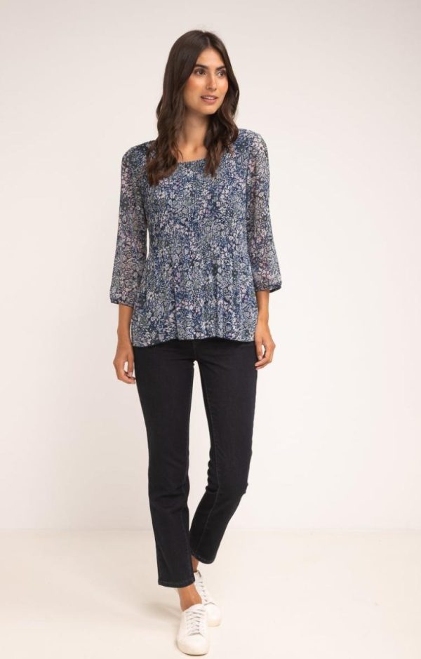 Armand Thiery Chemisiers | Femme Tunique Plissée Imprimée Marine