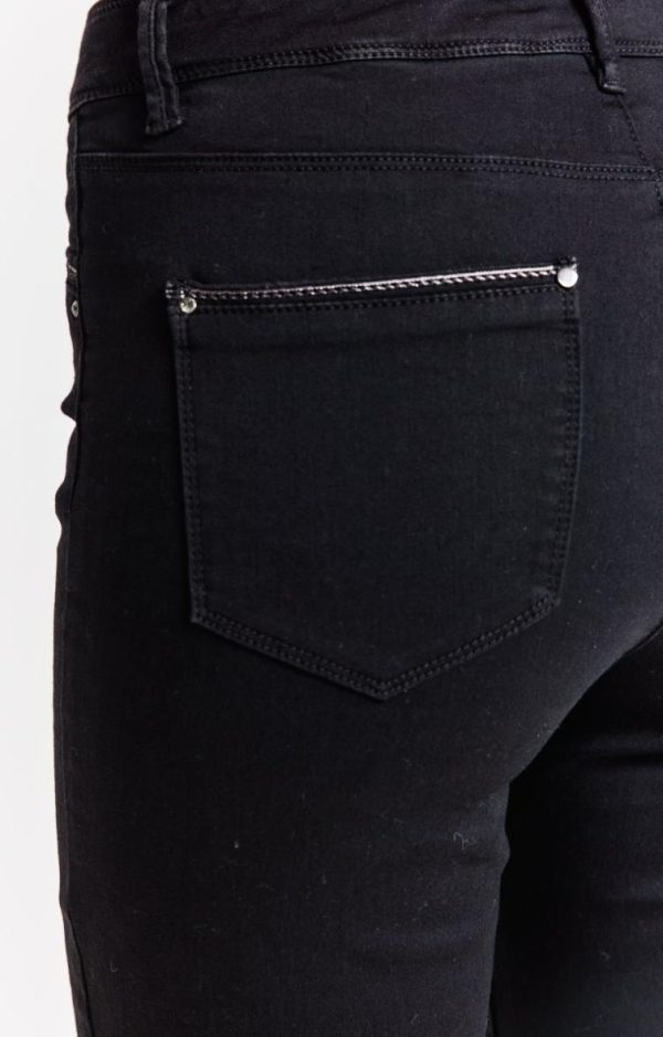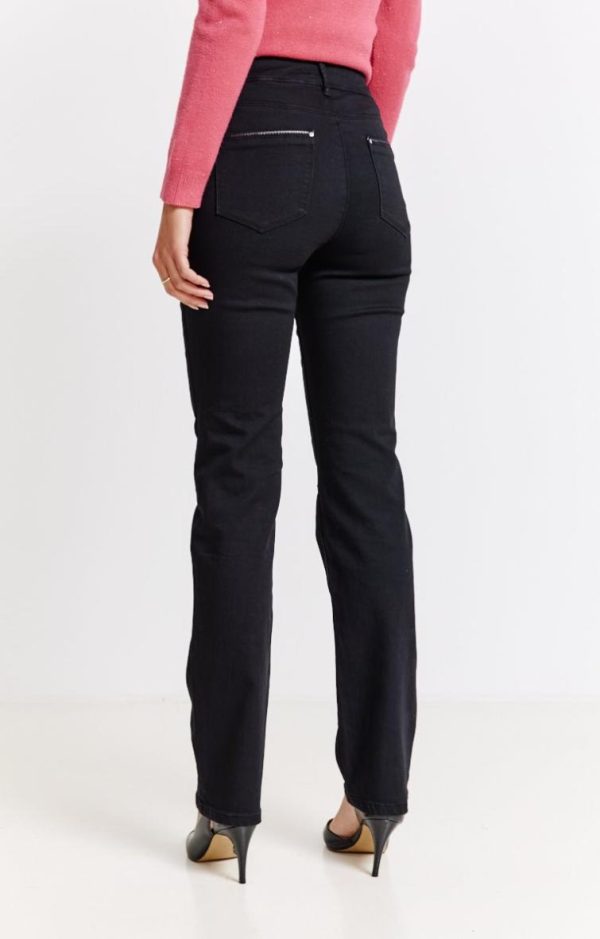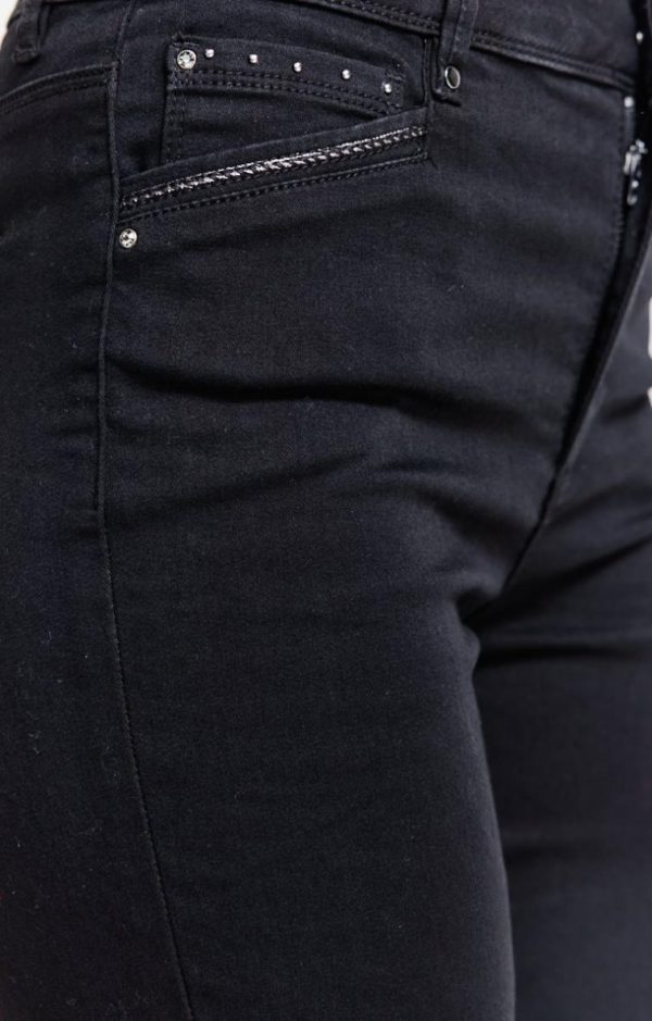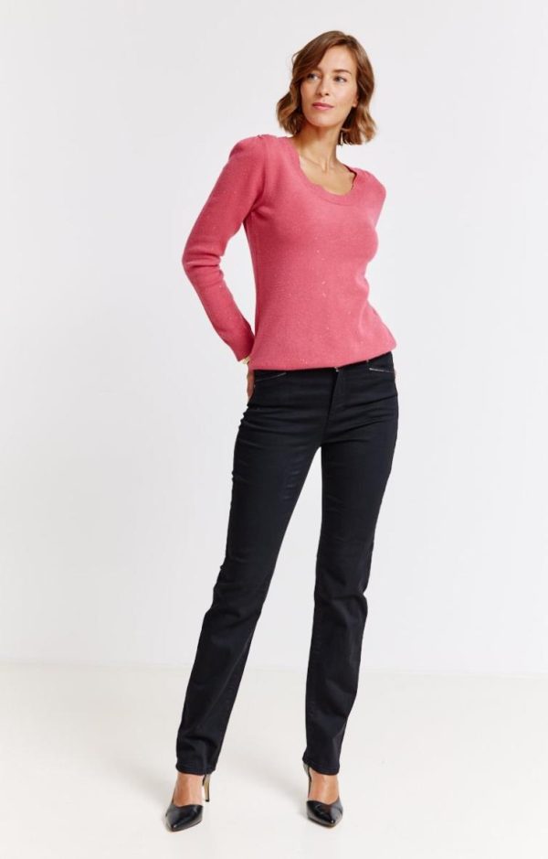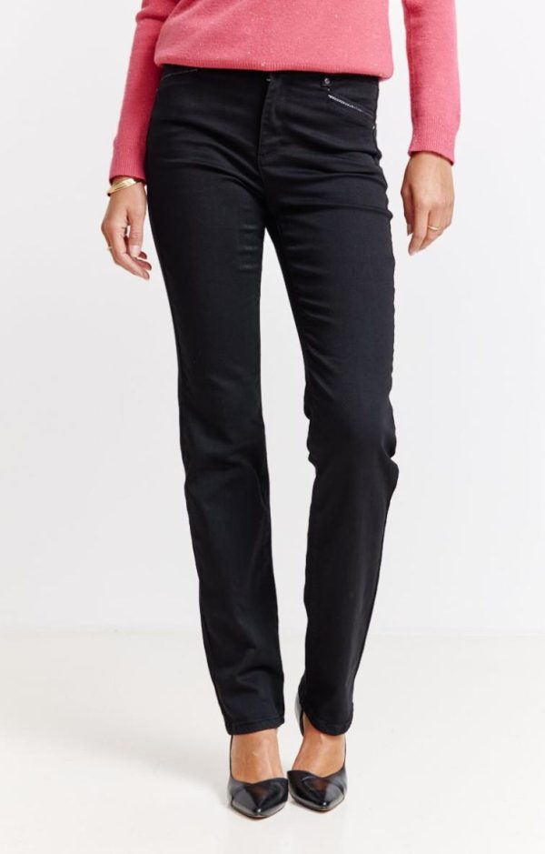 Pantalon droit uni aux poches ornées de tresses irisées, clous et strass. Coupe droite. Fermeture boutonnée et zippée. 2 poches cavalières et une poche ticket devant, 2 poches plaquées au dos. Teinte unie. Toile. Poches cavalières et plaquées bordées de tresses métallisées. Clous et strass aux poches. Passants à la taille.Notre mannequin Déborah mesure 1m77 et porte un pantalon taille 36.