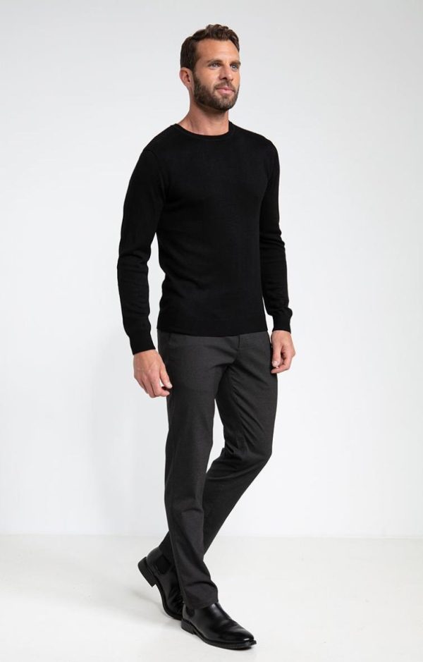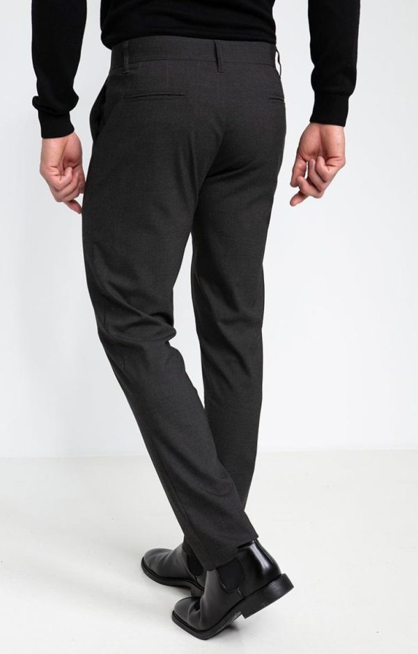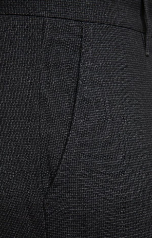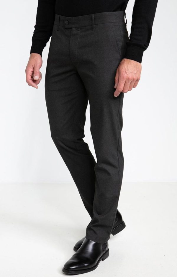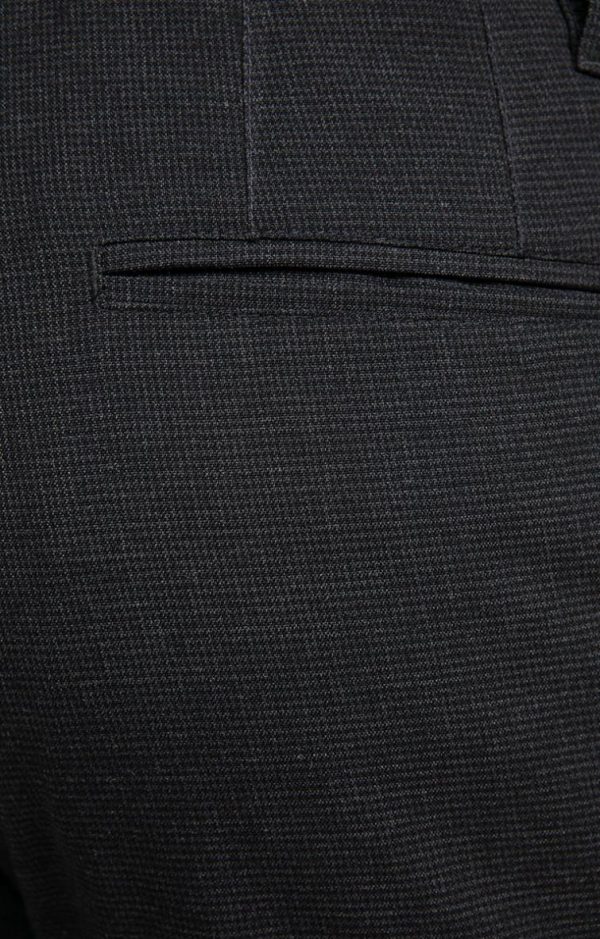 Pantalon chino slack casual à micro-motifs. Coupe ajustée, longueur pied. Fermeture par zip recouvert et patte boutonnée. 2 poches italiennes devant. 2 poches passepoilées au dos. Micro-motifs sur l’ensemble. Passants pour ceinture. Ce vêtement est composé à 65% de polyester fait à partir de bouteilles en plastique recyclées (nous utilisons des chutes de tissus retraitées en nouvelles fibres puis mélangées à des fibres pures pour recréer de nouveaux tissus).