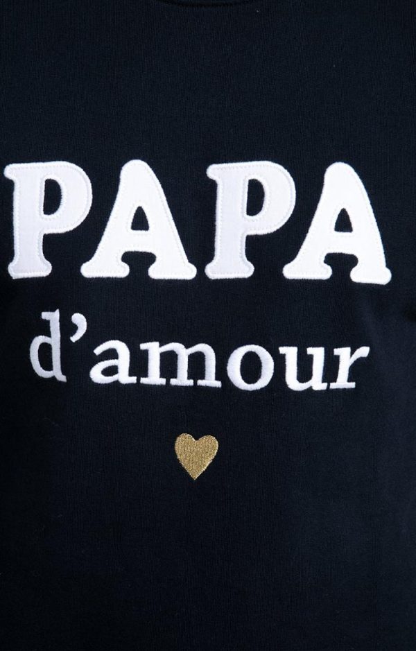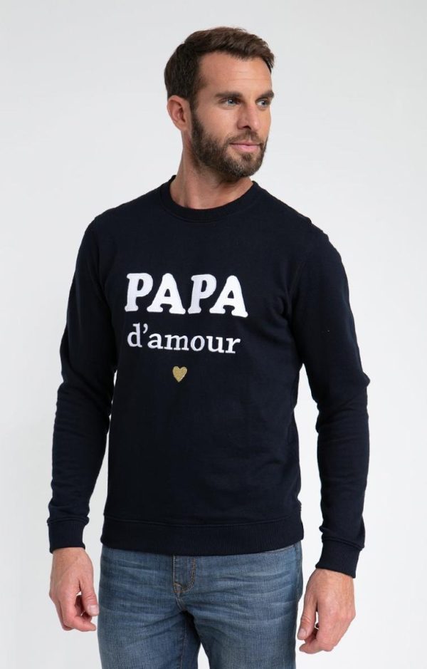 Sweat en coton avec message contrasté sur la poitrine. Idée cadeau pour Noël. Coupe droite. Manches longues. Emmanchures droites. Col rond ras de cou. Coloris uni. Matière souple. Message « Papa d’amour » et cœur irisé brodé sur la poitrine en teintes contrastées. Finitions poignets, base et col en bord-côtes. Composition 100 % coton.Notre mannequin Nicolas mesure 1m87 et porte un sweat taille M.